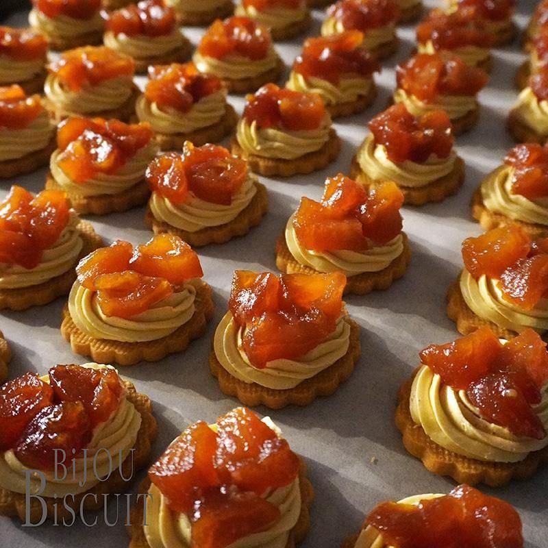 オーブンでじっくり火を入れおいしさをぎゅっと閉じ込めた紅玉りんごをグラスフェッドバタークリームと合わせて、グルテンフリーサブレでサンド。